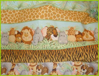 | Kay Adler Dolls can create your child's playroom filled with jungle animals and patterns! From Jungle Babies blanket, curtains, pillows, throws, baby books, and even pajama bags, your child will enjoy these whimsical characters and enjoy playing in their room with their jungle friends!